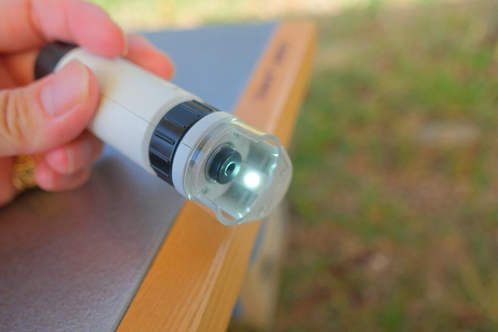 ポケットサイズの「顕微鏡」は、手のひらにすっぽり収まるサイズ感。